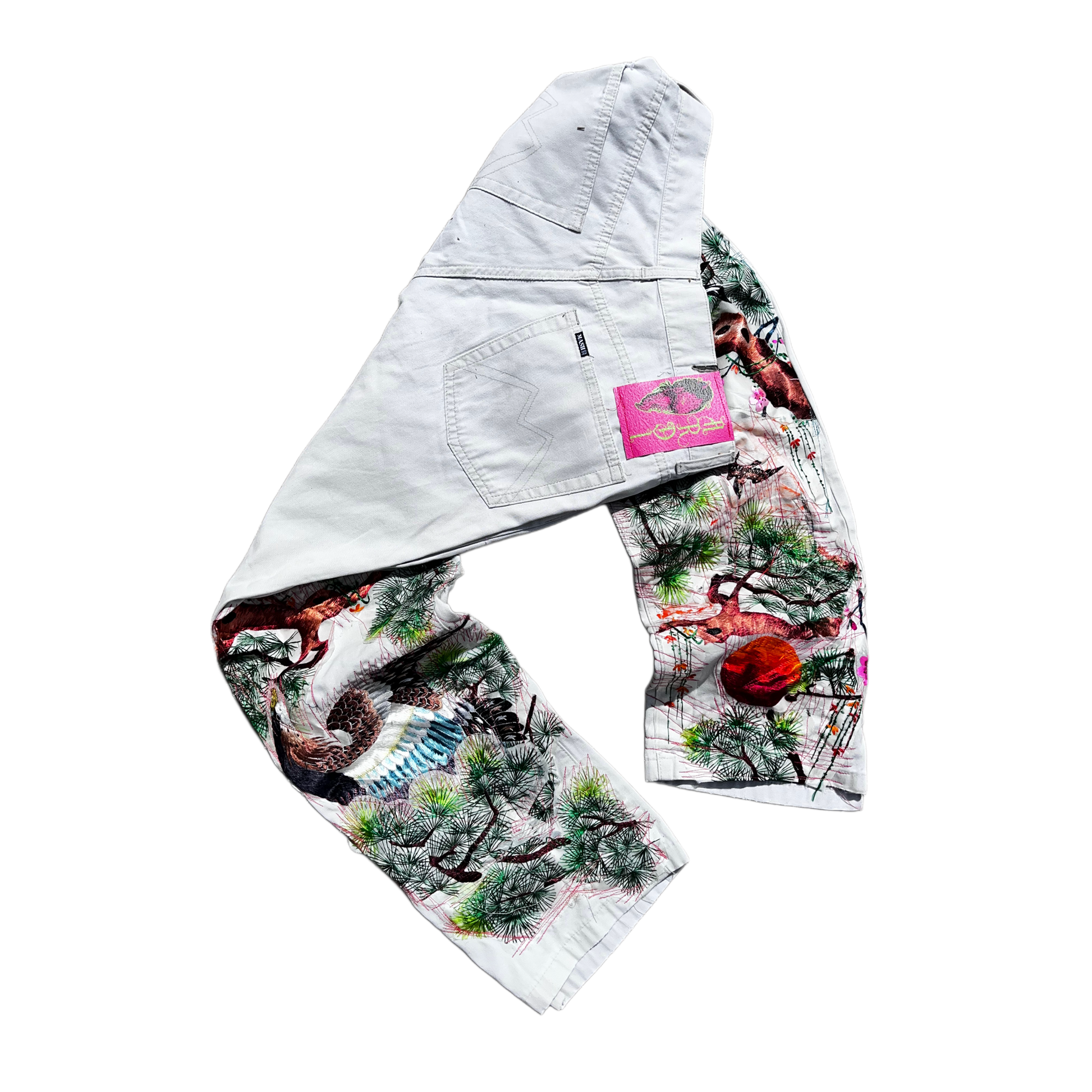 jeans in patchwork lavorato a mano in seta, filamenti provenienti dal Giappone . patch custom su retro, fit regular .