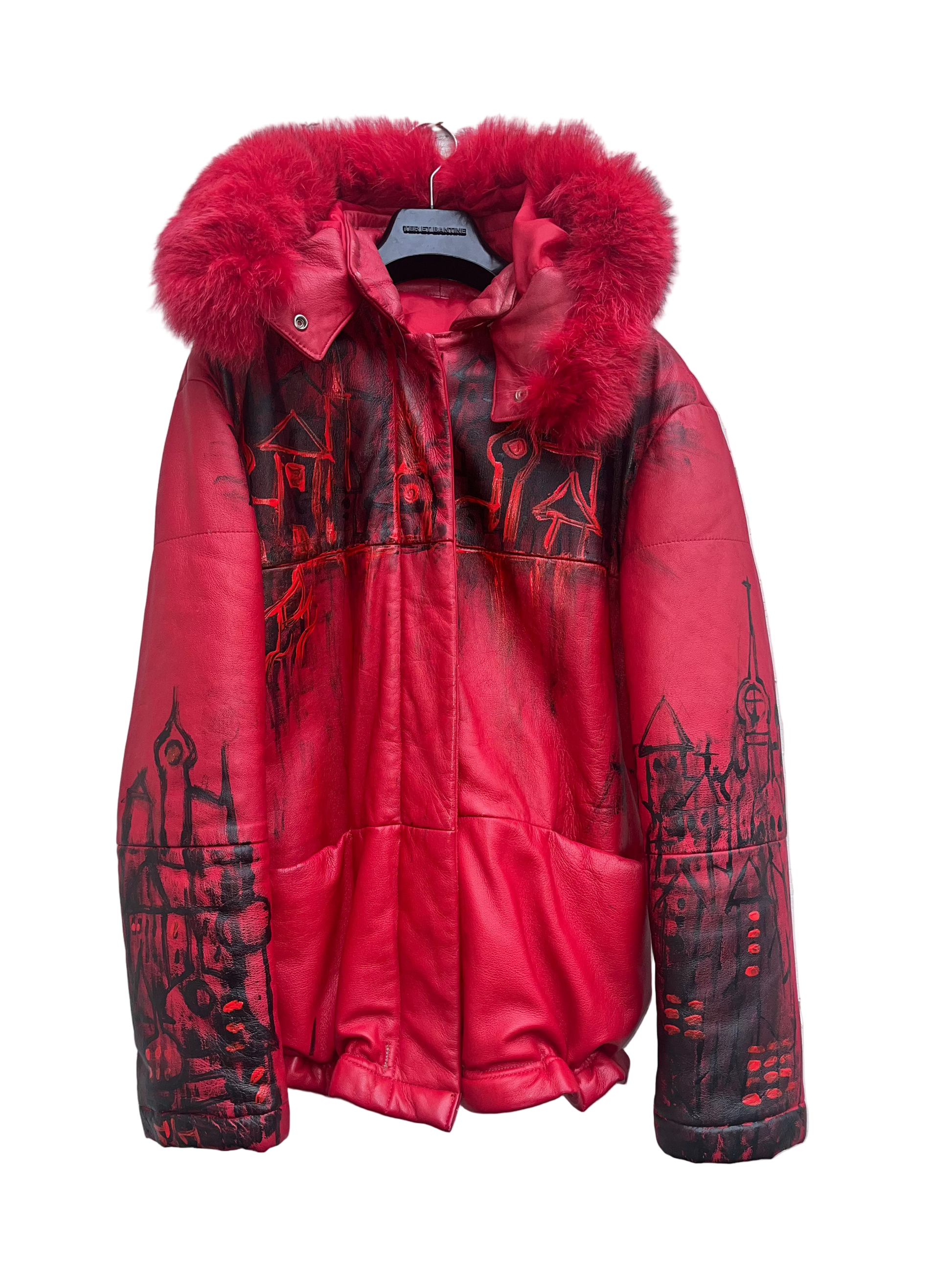dipinta a mano e elasticizzata in vita , pezzo in vera pelliccia e pelle